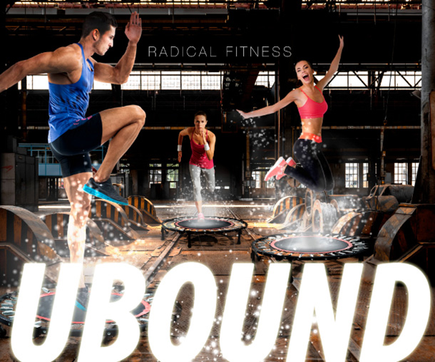 ラディカルフィットネスのプログラムの1つ「UBOUND ユーバウンド」。今大人気の1人用トランポリンを使用したグループエクササイズプログラムです。テンポのよいミュージックで抜群の運動効果を実現し楽しくトレーニングできます。